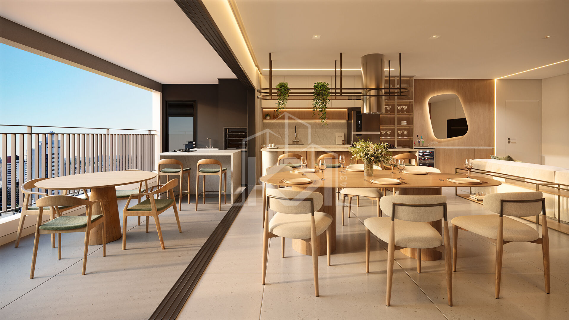 A sacada gourmet é um dos grandes destaques: equipada com ponto de gás, churrasqueira a carvão com sistema de exaustão e damper, ideal para quem gosta de receber com estilo.