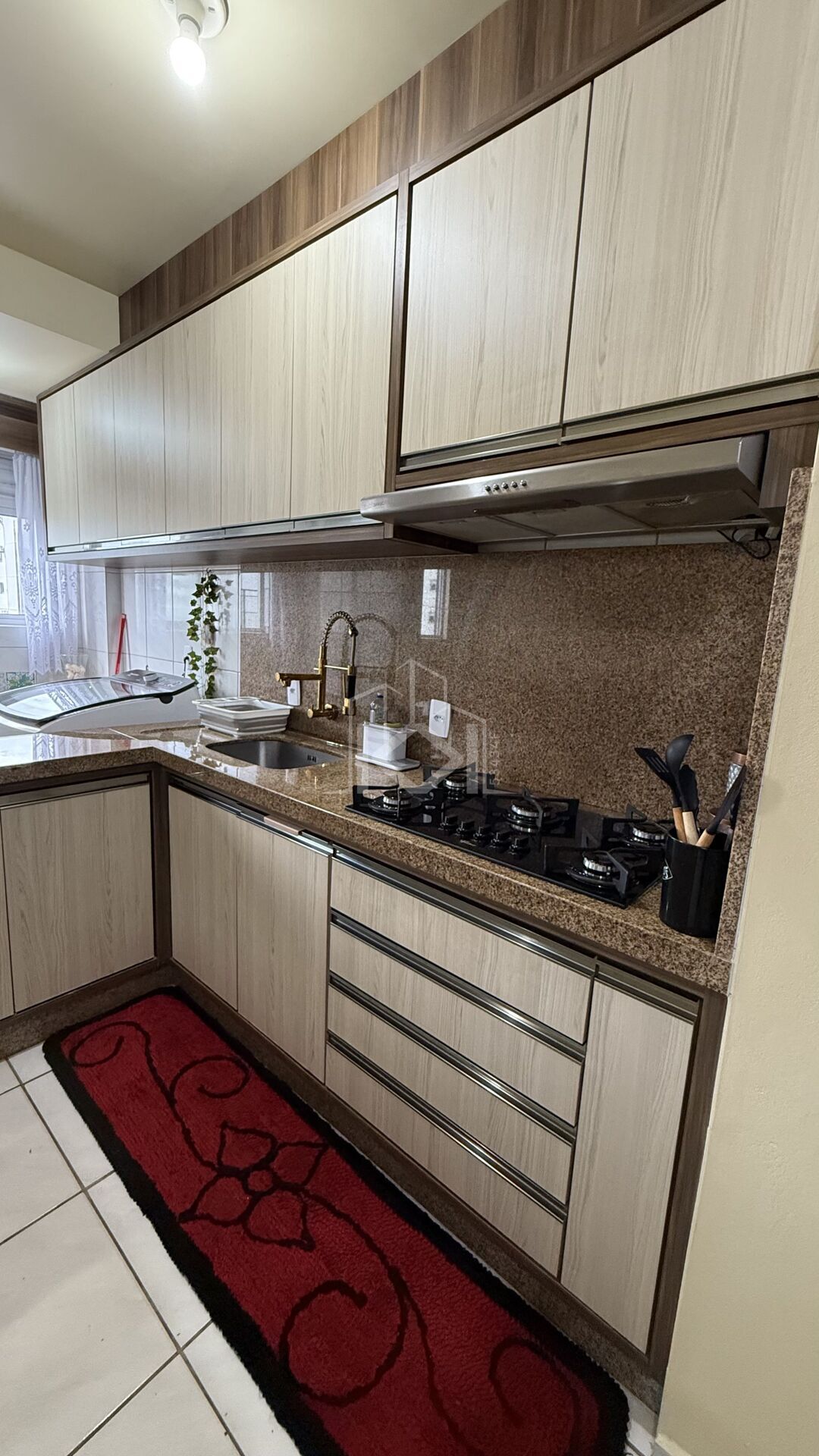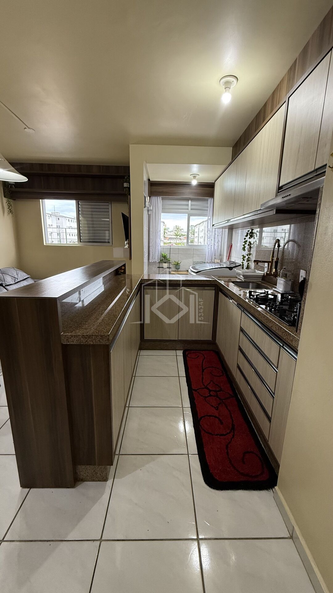 O apartamento está situado no 2° andar, em prédio sem elevador, e será entregue mobiliado, contando com móveis planejados sob medida de alta qualidade e acabamentos em pedras de mármore. Possui 2 dormitórios, lavanderia e 1 vaga de garagem.